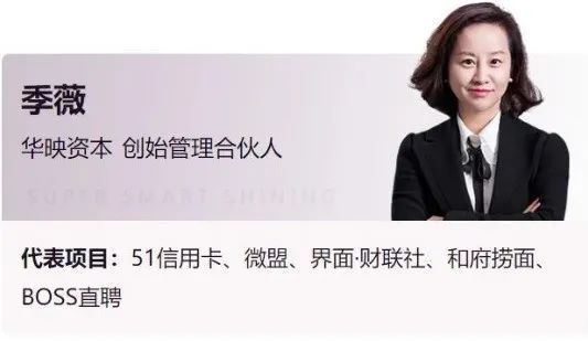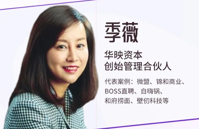 华映创始管理合伙人季薇女士在风险投资领域拥有10余年经历,在TMT、大消费、数字内容领域有丰富的投资经验,带领华映资本始终围绕人群需求的迭代和科技的更新换代进行布局,始终关心企业价值的持续成长,独立判断,领投为主,擅长布局式投资,并进行产业整合。曾主导投资天鸽互动、微盟科技、锦和商业、界面·财联社、BOSS直聘、深兰科技、金柚网、和府捞面、自嗨锅、本源量子等企业。